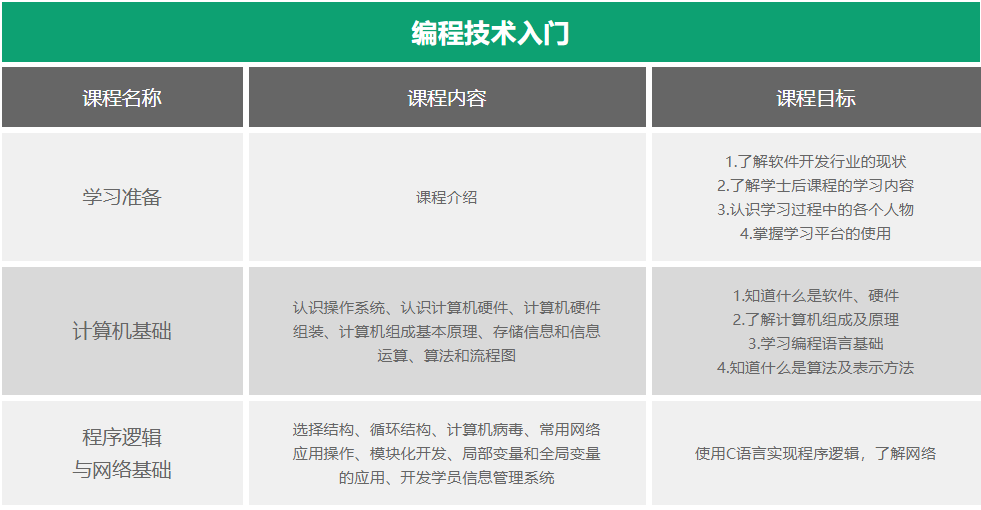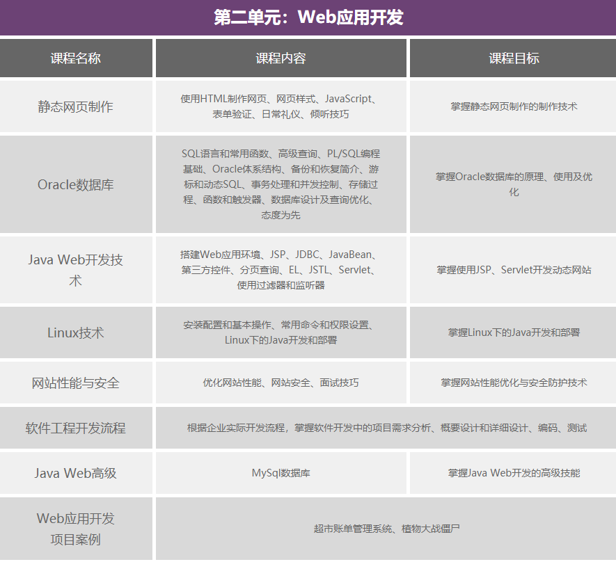 北大青鸟JAVA软件工程师课程体系共分为五项内容:基础课程和四个阶段课程,技术囊括当下企业急需的Java技术方向,配合企业成熟Java项目实训,毕业即拥有优秀的编程能力,受企业欢迎。