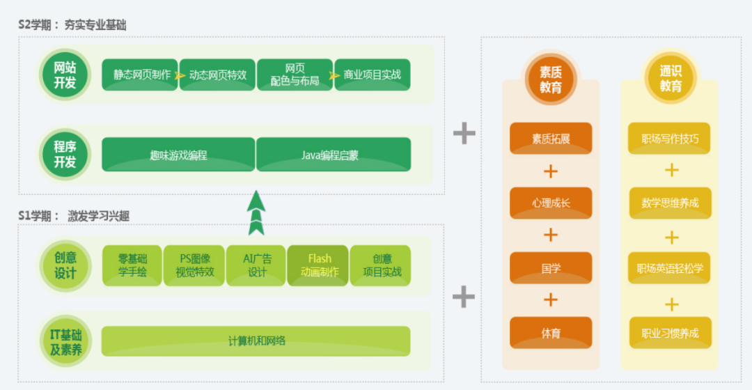 素质教育类课程:心理成长课、国学等课程全面开发智慧潜能,提高基本素质,形成健全人格。