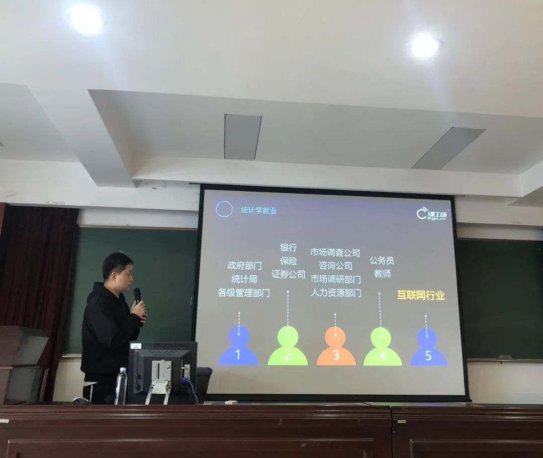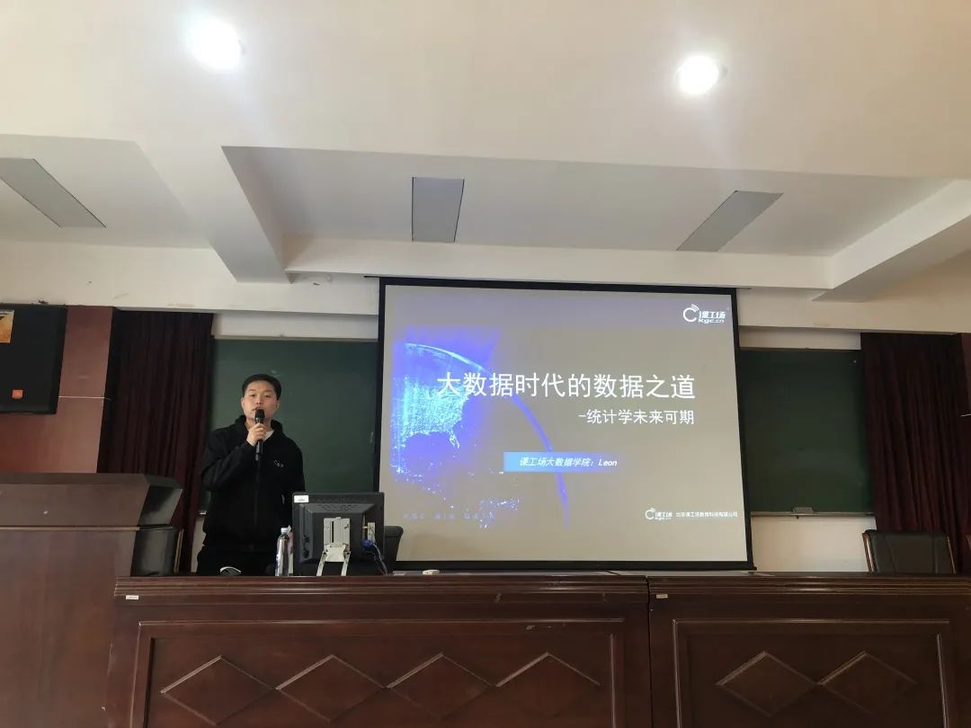 10月27日上午,长沙实力学校联合湖南师范大学理学院展开一场重要讲座——大数据时代的数据之道。地点为湖南师范大学格物楼309。为了紧跟时代发展,走在时代的前沿,了解更多的业界动态和最先进的知识技能,本次活动特别邀请了北京课工场总部——杜静华老师主讲。湖南师范大学统计学学生共同参与了本次讲座。
