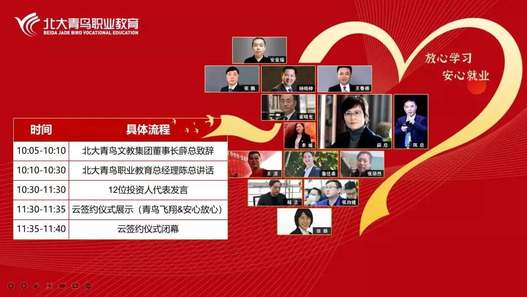 2021年3月31日,为深刻践行北大青鸟“教学为本,师爱为魂”教学理念,为实现每一个IT学子的梦想而努力,让每一个家庭“安心、“放心”!北大青鸟总部启动了2021年北大青鸟“安心学习·放心就业”公约云签约仪式。