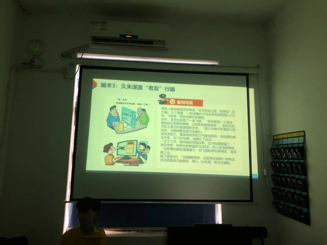 班会上,班主任老师首先通过PPT中的诈骗案例和视频向同学们讲述了钓鱼网站、虚构中奖、网络招工等多种电信诈骗的惯用手段、作案方式以及特点,点明了提高自身防电信诈骗能力的重要性。